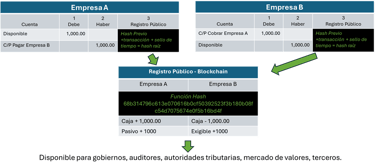 El registro en la blockchain será accesible para ambos y para auditores externos, evitando discrepancias y facilitando el control. El auditor no necesitará revisar comprobantes de la transacción ya que la misma es confirmada por ambas empresas en la cadena de bloques.