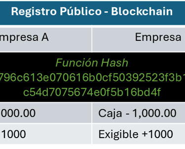 Ambas partes registran la transacción en una blockchain pública o privada, con firmas digitales que garantizan la autenticidad de la operación.